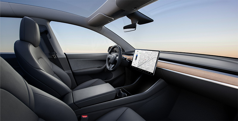 ایلان ماسک میگوید که انتظار دارد این خودرو نیز به عنوان امنترین خودروی سایز متوسط SUV شناخته شود. طراحی داخلی تسلا مدل Y شباهت بسیار زیادی به خودروی مدل ۳ دارد. مثل مدل ۳ در تسلا مدل Y هم شاهد نمایشگری ۱۵ اینچی در مرکز داشبورد هستیم که لمسی است و تقریبا تمام اطلاعات مورد نیاز از جمله سرعت لحظهای خودرو، روی این نمایشگر نشان داده میشود. همچنین تسلا مدل Y دارای سقف پانارومیک یک پارچه است که از بالای سر سرنشینان جلو، تا بخش پشتی خودرو کشیده شده است. ردیف سوم صندلیها که جا برای دو سرنشین اضافه و در مجموع ۷ سرنشین را امکان پذیر میکند نیز تا سال ۲۰۲۱ برای این خودرو عرضه نمیشود.
